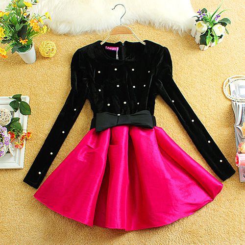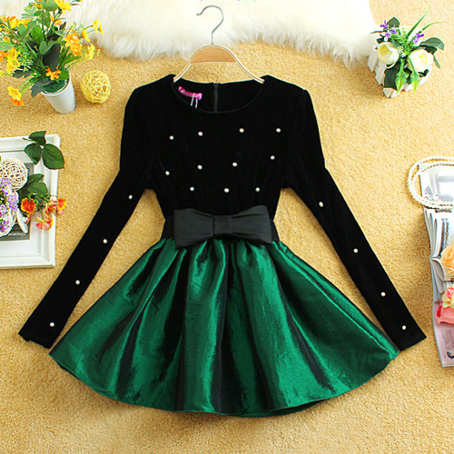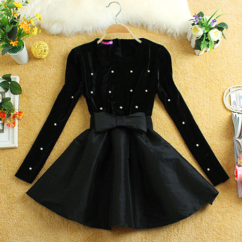 with beads for decoration. Long sleeve,round neck and bowknot waist strap. Take it to express your beauty.
