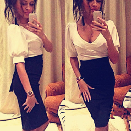 Contrast color style,with sexy v-neck,short sleeve and package hip design,perfect outline