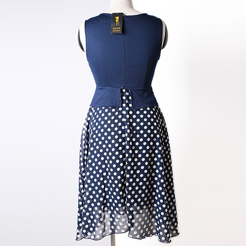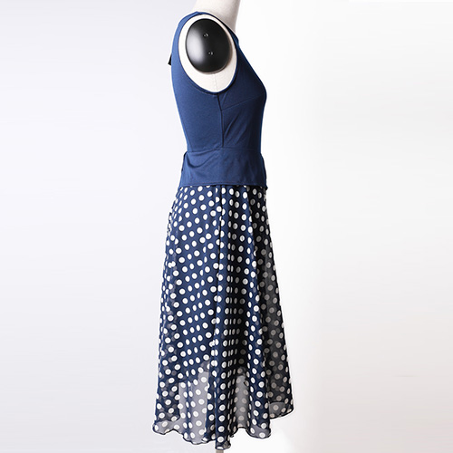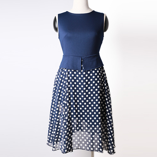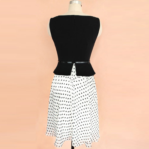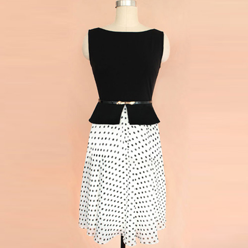 Mock two-piece style,stylish and chic. Sleeveless,high waist and dots