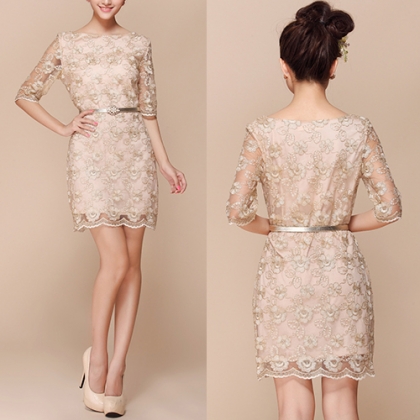 and exquisite workmanship,with half sleeve,round neck and slim fit design. Show your beauty with it.