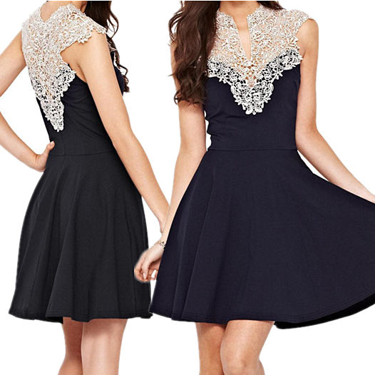 Wanna show your elegant temperament and charming style? Then try this dress,it can achieve you. Features hollow out lace spliced design and v-neck style,sexy and charming. Sleeveless,high waist design. Like it? Add it to your wardrobe!