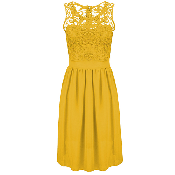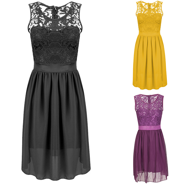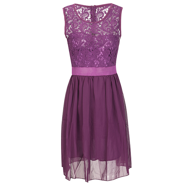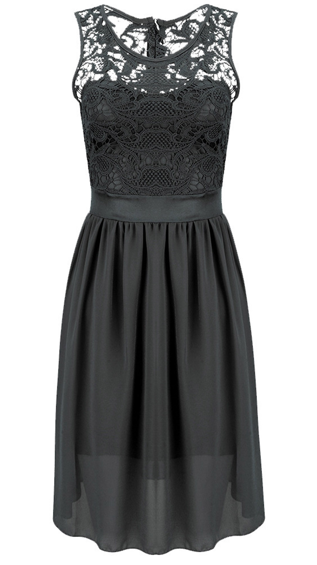 Classic, feminine, elegant and flirty: this sleeveless dress is a must for effortless style.Combo of lace and chiffon,gives you a comfortable wearing style. Load it up with yourfavorite accessories to make it your own style.