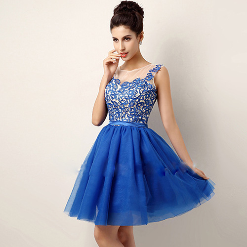 Lace spliced style,with sleeveless,round neck,high waist and flowing hem. Just need to pair
