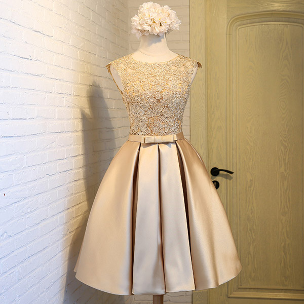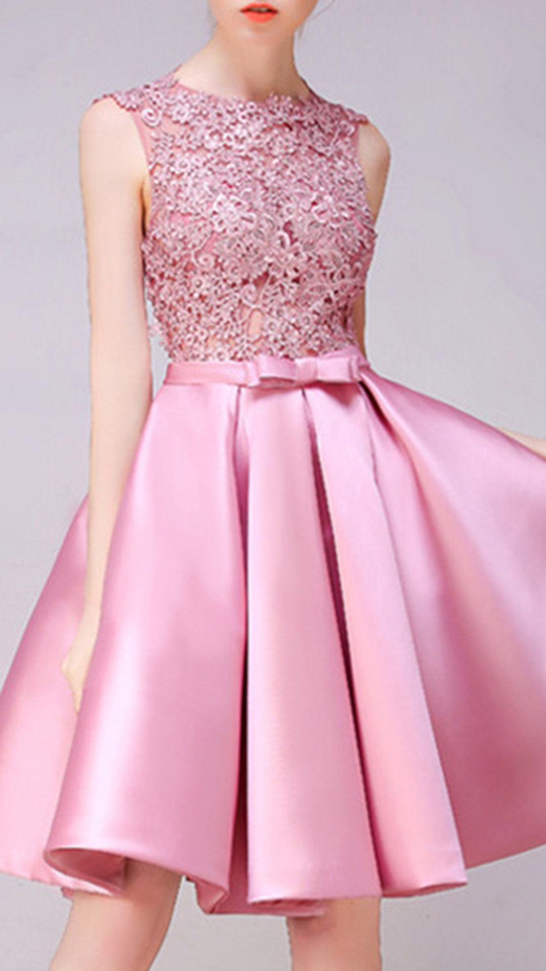 such as its round neck,high waist and lace spliced design. All this details make this dress look so charming
