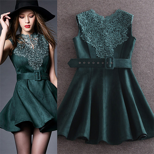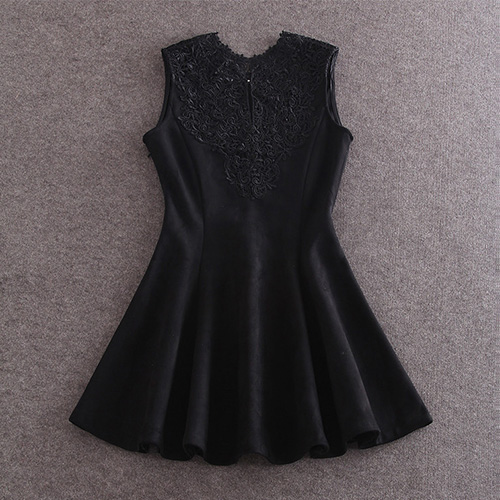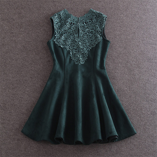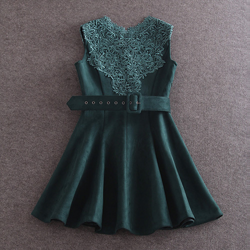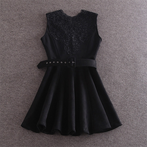 Features lace spliced design,filled with sweet and feminine sense. Sleeveless,round neck and slim fit design.
