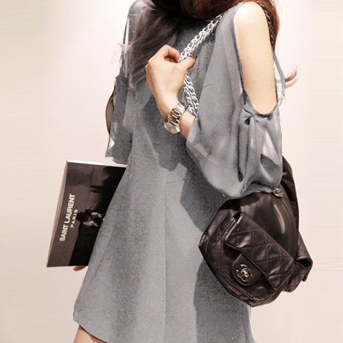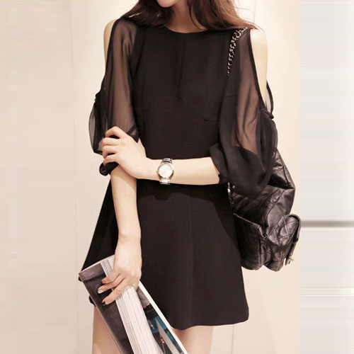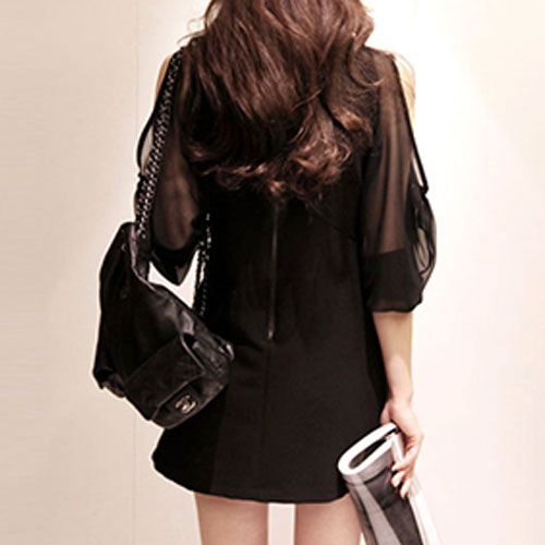 solid color,with off-shoulder design,3/4 sleeve and round neck style.