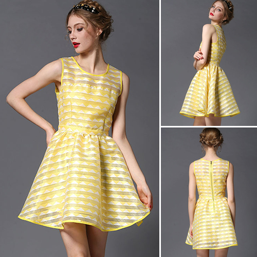 Top part with see-through style,sexy and beautiful. Sleeveless,round neck and
