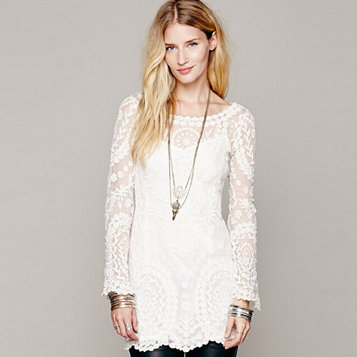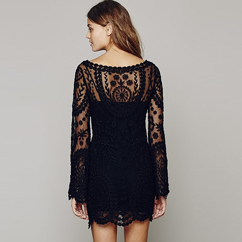 Cheer up your weekend routine with this long sleeve lace dress. It's little see-through