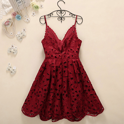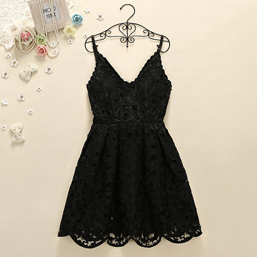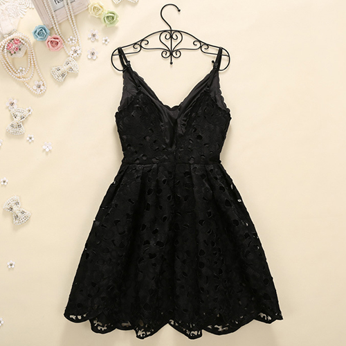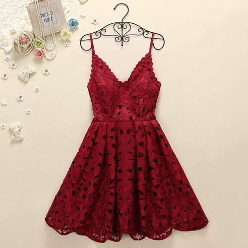 This dress will bring you a delicate youth and wonderful time. Sling style and hollow out lace design,