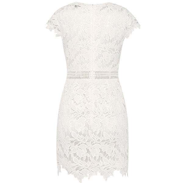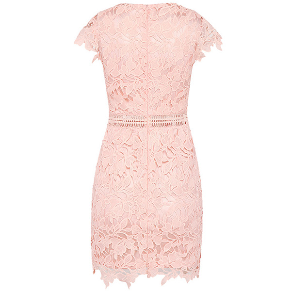 Elegant Solid Color Short Sleeve High Waist Slim Fit Lace Dress