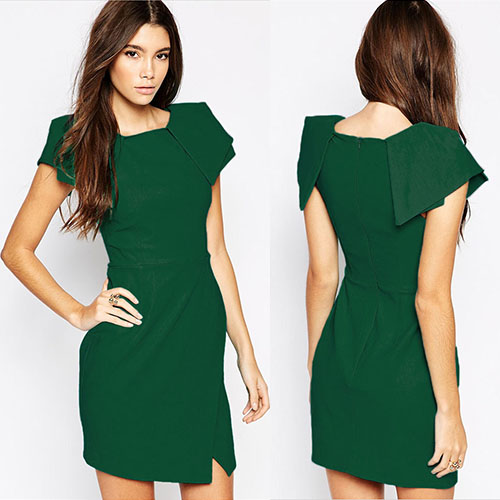 Elegant,charming and stylish,this short sleeve dress features a round neck,front slit hem and