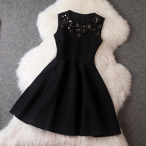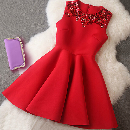 Show your elegant temperament and slender figure through this dress. It features solid color,elegant and dignified. Neckline with sequins for decoration,sparkly and glamorous. Sleeveless,high waist design. Even in winter,you can pair it with your coat and leggings.