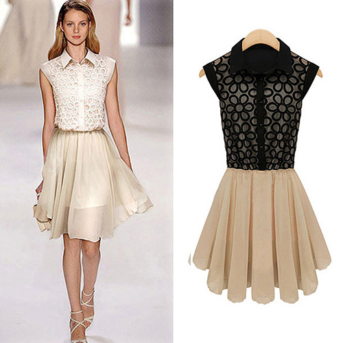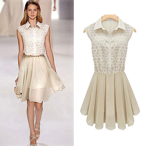Turn-down collar style,stylish and elegant. Embroidery craft makes this dress more feminine and sweet.