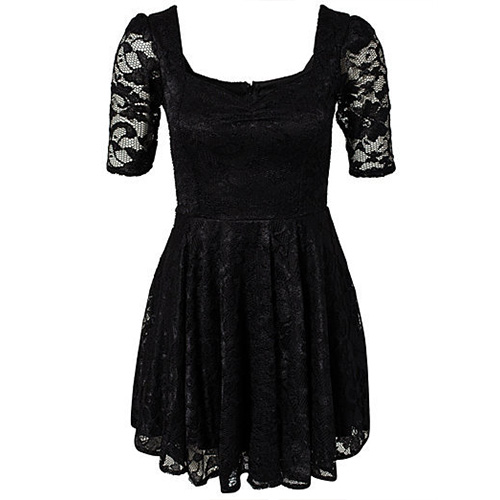 If you don't have a lace dress,what are you waiting for? Add this lace dress to your wardrobe. It features black color,a kind of mysterious and flattering color. Sexy v-neck,short sleeve and high waist design,perfect outline your seductive and charming figure.