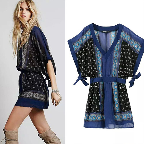 with bat sleeve,v-neck and gathered waist design makes this dress look more glamorous. Attracted by it?