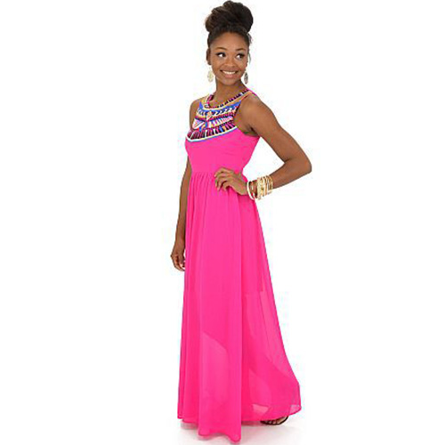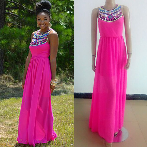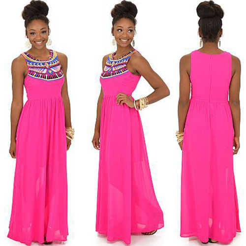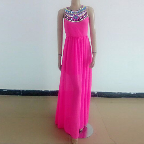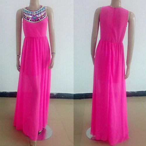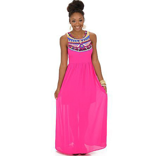 Stay stylish and charming by way of this sleeveless chiffon maxi dress! Its ethnic style printed design