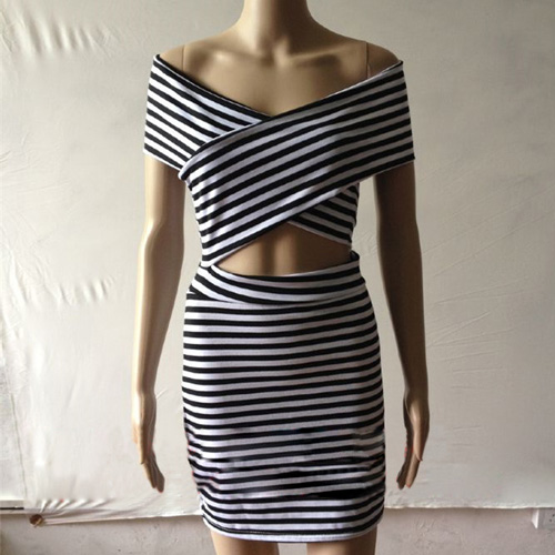European Style Sexy Slssh Neck Slim Fit Striped Dress