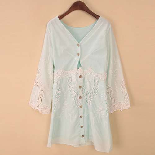 Crafted from chiffon fabric,with exquisite hollow out lace embroidery process,