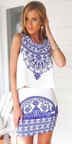 These two pieces feature Blue and White Porcelain print pattern,chic and stylish.
