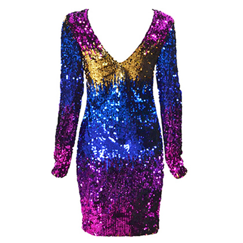 Have you ever seen such a sparkly and chic dress? It features color gradient design,with sequins for decoration.