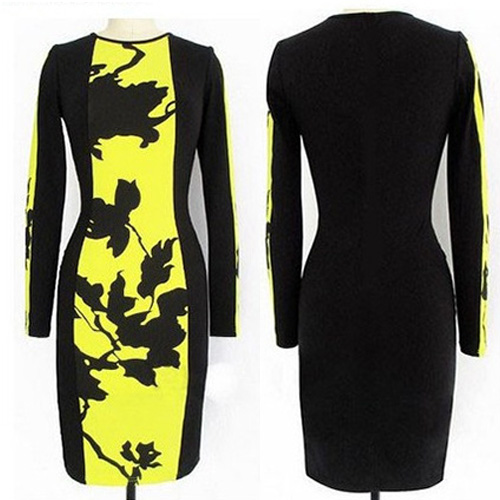 This dress is characterized by contrast color style,with floral print pattern,fashion and popular. Fashion round neck and long sleeve design. A perfect choice for you in some cold days. And even in winter,you can wear it with your coat and leggings.