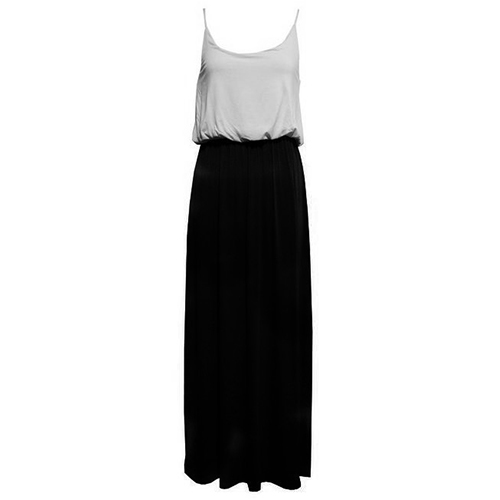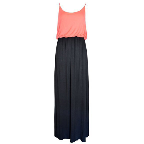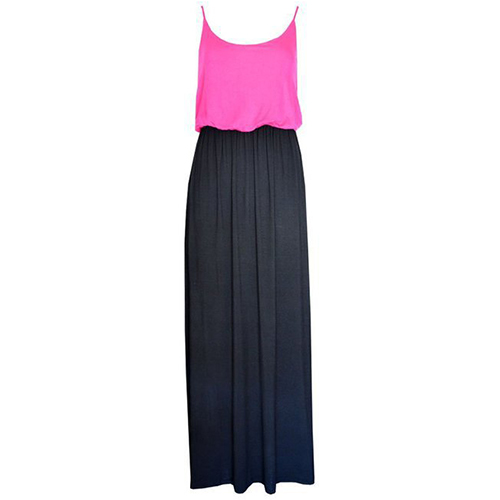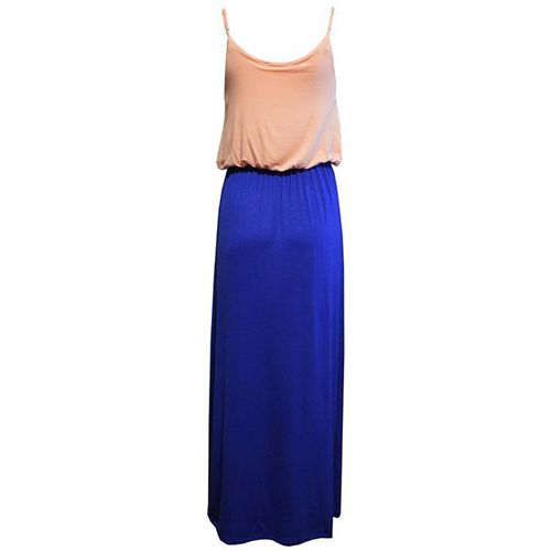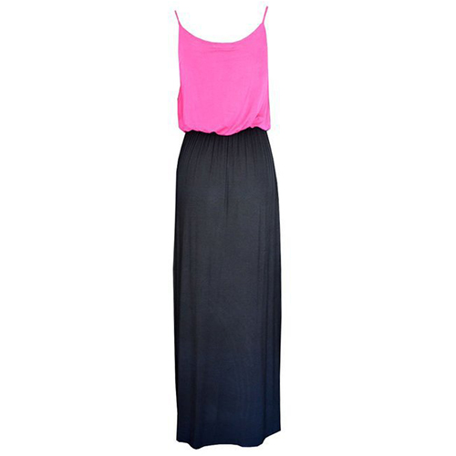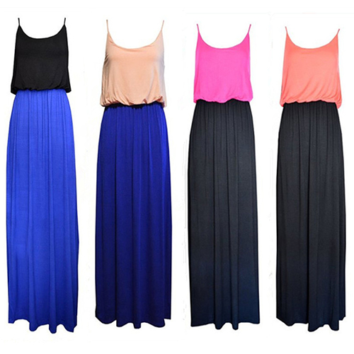 Fashion Contrast Color Gathered Waist Sling Maxi Dress