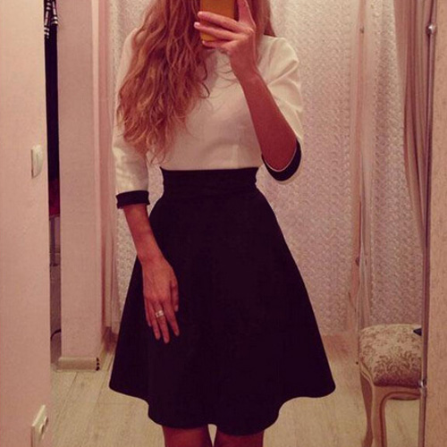 half sleeve and high waist design,perfect outline your slender figure. No matter for working,dating or