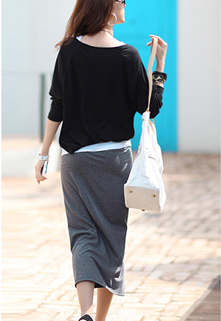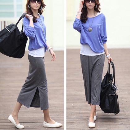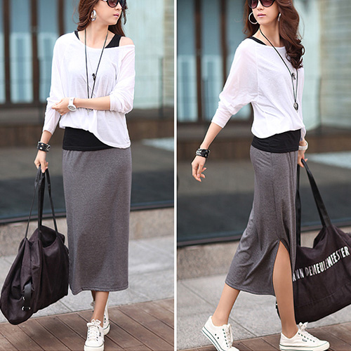 You must be the most charming and fashion woman in this mock three-piece dress. It features contrast color design,mock three-piece style,bat sleeve,round neck and slit hemline. Skin-friendly and breathable fabric make it comfortable to wear.