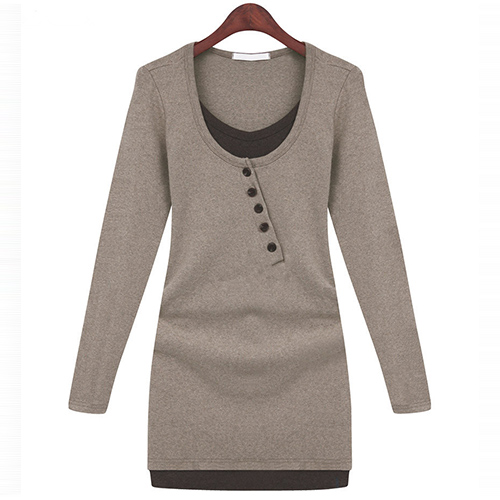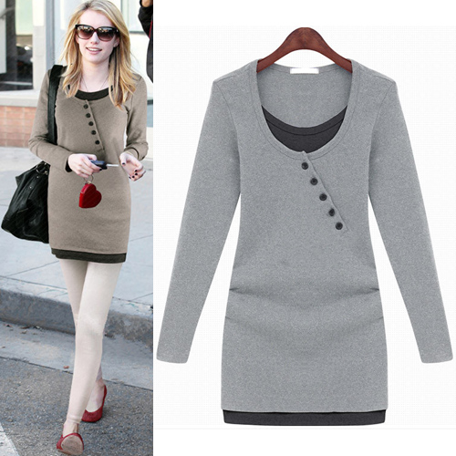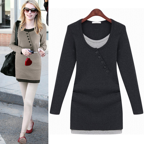 Mock two-piece style,this dress is a perfect choice for you in some chilly nights. Contrast color style,