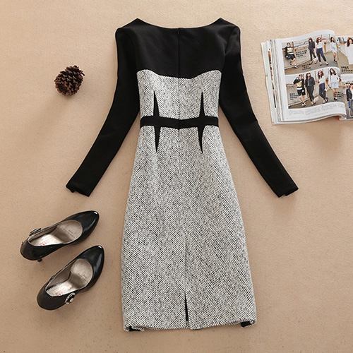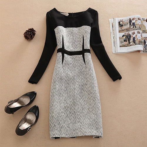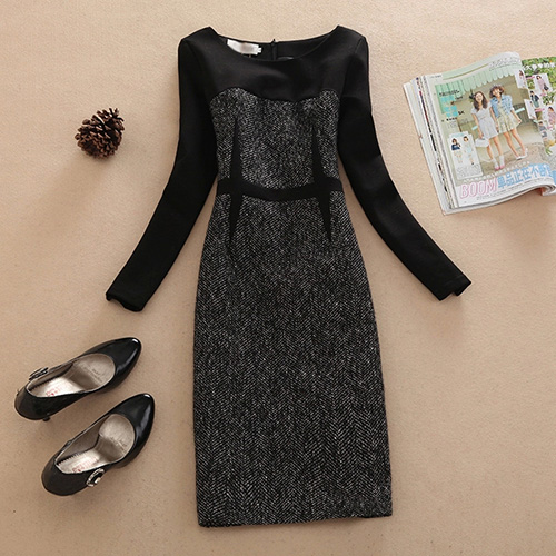 This woolen dress is a perfect choice for you in winter. It features contrast color style,fashion round neck and long sleeve design.