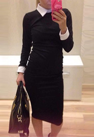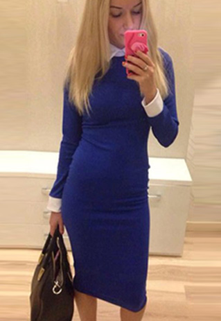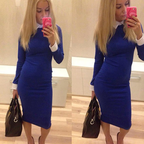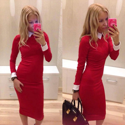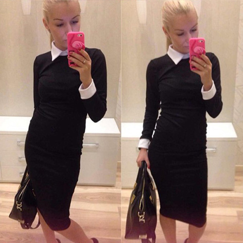 No matter for formal or informal occasion,this dress is a perfect choice for you. It features contrast color style,sweet POLO collar and long sleeve design. Slim fit and package hip design perfect show your slender figure.