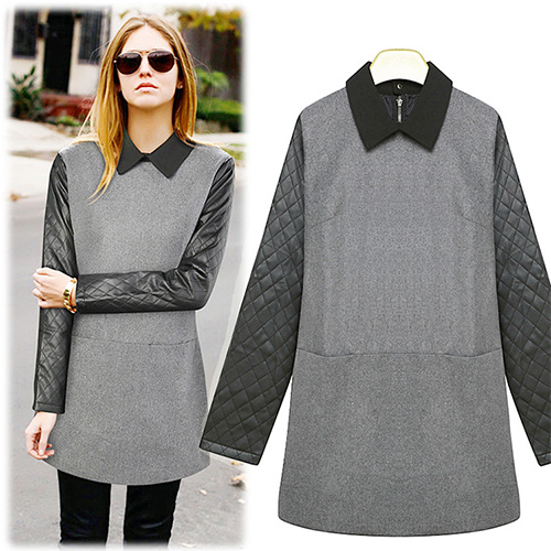 This dress features POLO collar design,sweet and cute. PU leather spliced long sleeve and loose design,comfortable to wear.