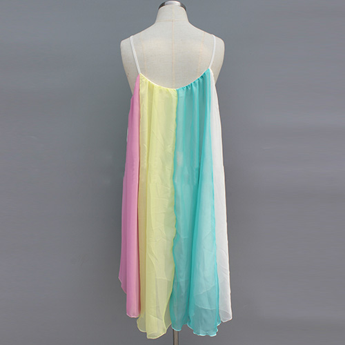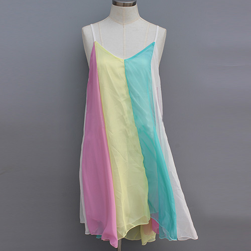 With a loose silhouette, this rainbow cami dress is combo of casual and feminine,