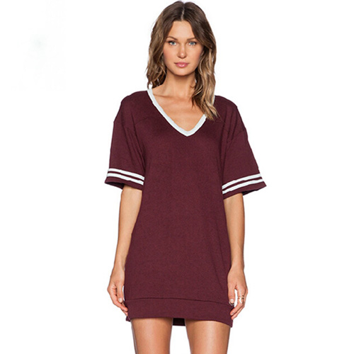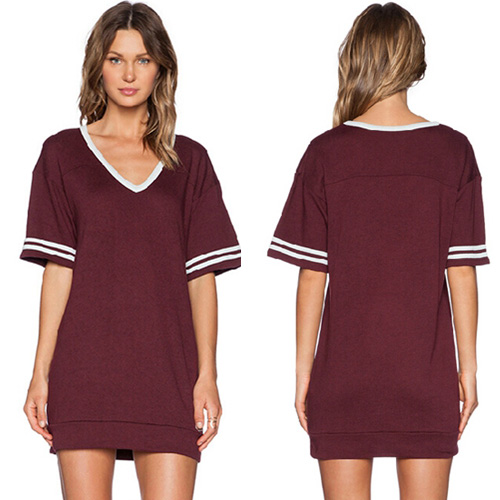 Contrast color style,with short sleeve,v-neck and loose design. You can enjoy the stylish
