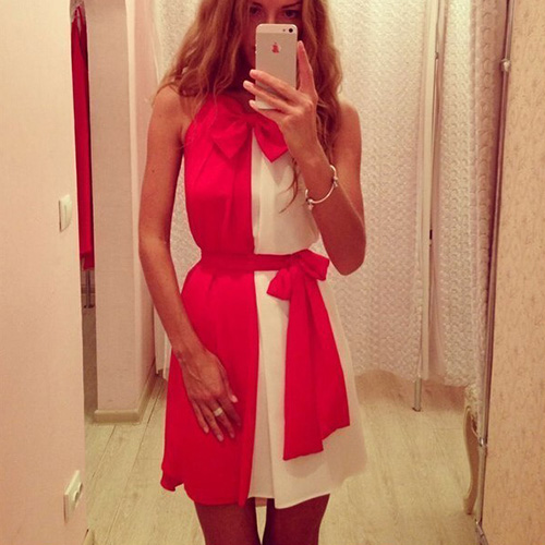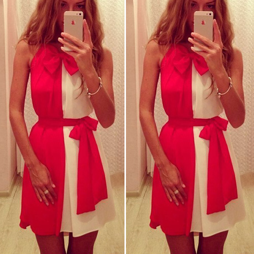 Contrast color style,neckline with a bowknot design,sweet and cute. With waist strap design,can perfect