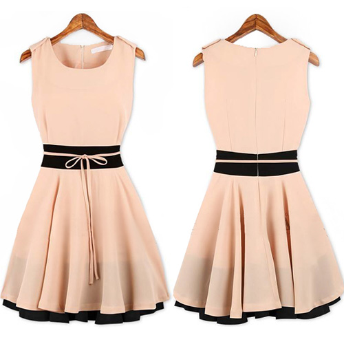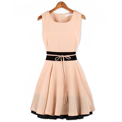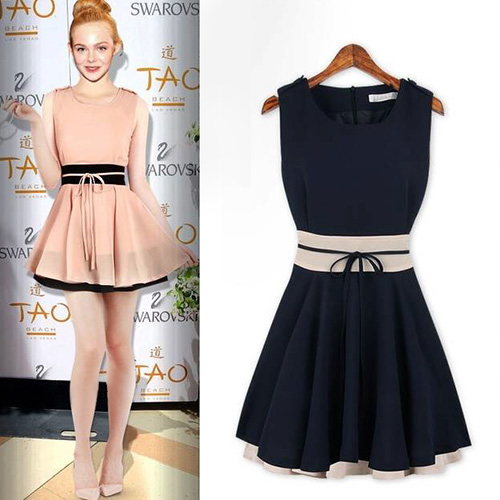 Contrast Color style,with sleeveless,round neck and gathered waist design,can perfect show your