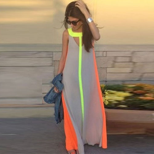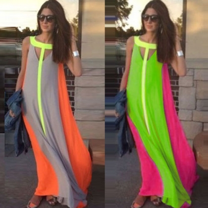 This sleeveless dress is your next off-duty favorite. Its contrast color design