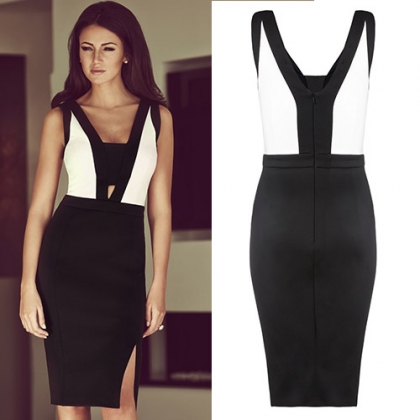 Combination of black and white,stylish and classical. Sleeveless,v-neck and slim fit design.