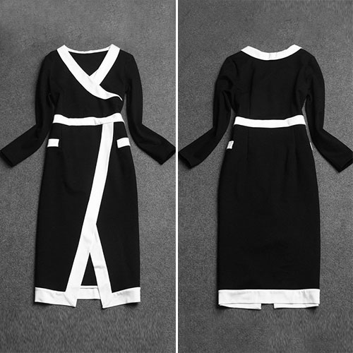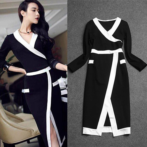 Unbelievable! Your are more beautiful than any one in this dress. Yes,it is customized for you. Featuring black and white contrast color design,fashion and popular. V-neck design and slit hemline. Front with two small pockets. You are the fashion queen in this dress.