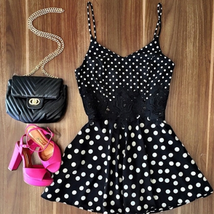 Wow,how could you be so charming and beautiful in this dress. It features sling style,with dots pattern.
