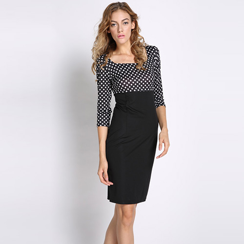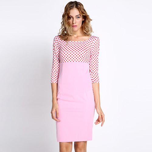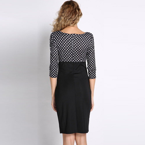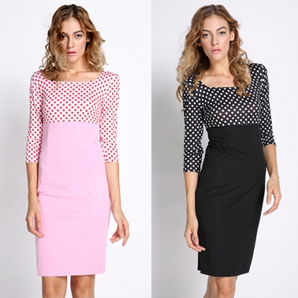 This dress features dots pattern,filled with stylish and chic elements. Unique U-neck,