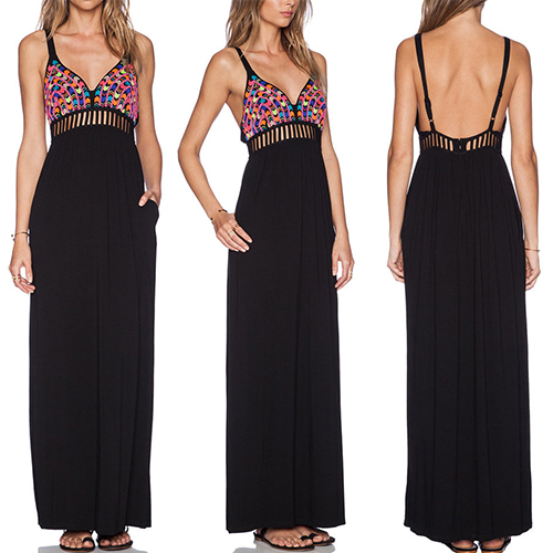 Make a splash at your next summer event in this simply stunning sling maxi dress.