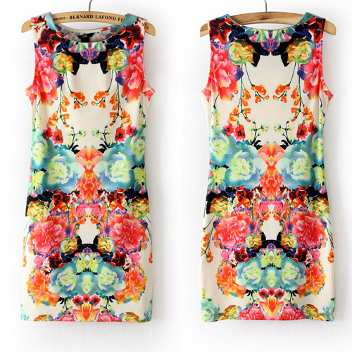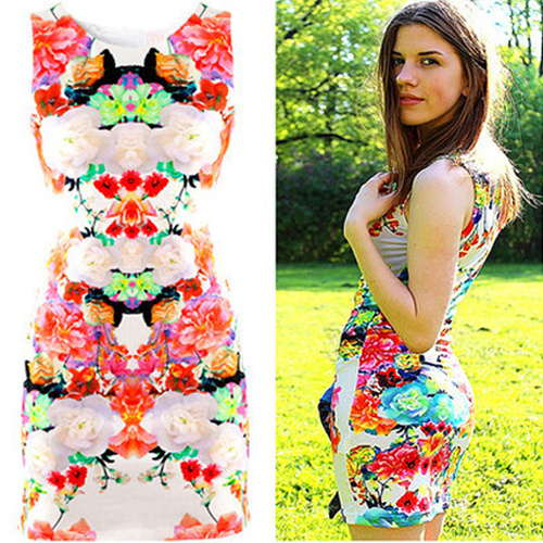 Show off your youth and vitality with this dress. Made of stretchy material,soft, comfortable and breathable. Featuring colorful floral print pattern,sleeveless, gather waistline and slim design,perfect show your charming curve. It also very cool and elegant matching a jacket.
