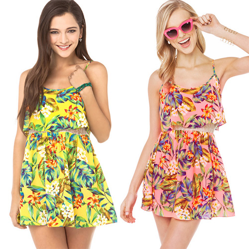 romantic floral print pattern. Sling style,with high waist design. A perfect choice to show your charming
