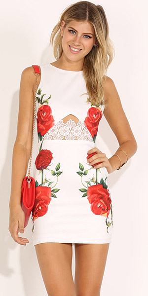 This dress will take seamlessly form office to evening out. Its sweet floral print and lace spliced
