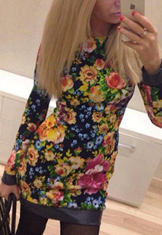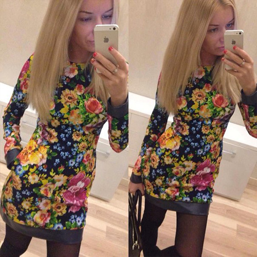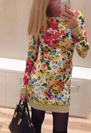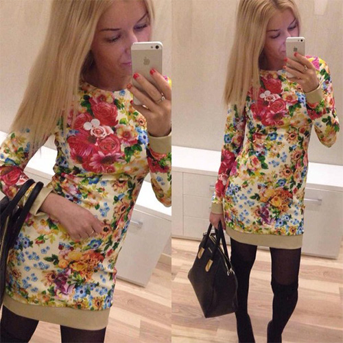 This dress is characterized by floral print pattern,sweet and romantic. Long sleeve,round neck and slim fit design,