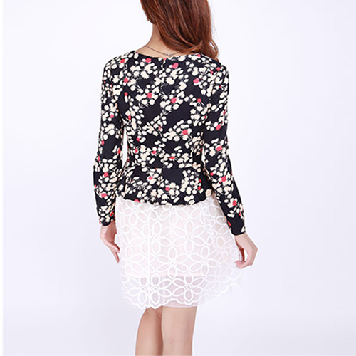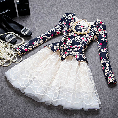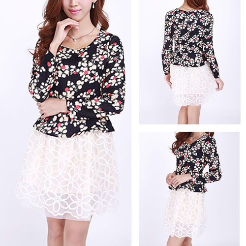 Show your elegant temperament and femininity with this dress. Featuring floral print pattern,with patchwork design,fashion and popular. Classical round neck and long-sleeved,can wear it with a cardigan and leggings in fall.