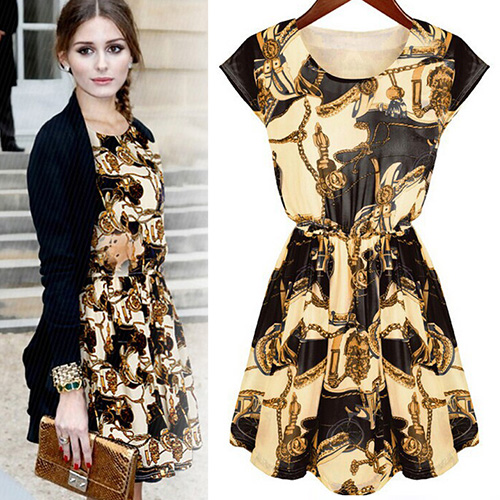Short sleeve,round neckand gathered waist design,can perfect outline