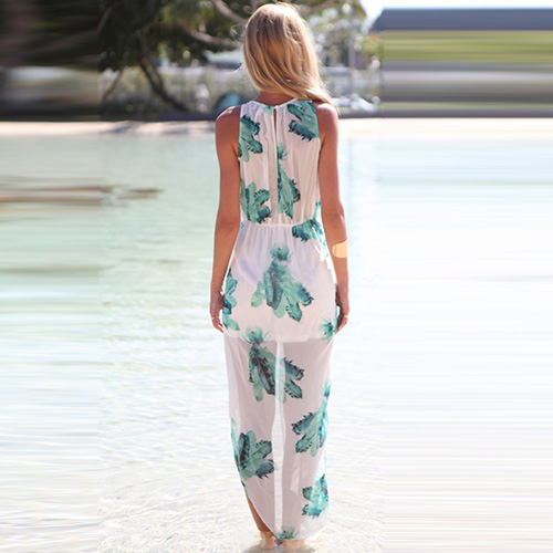 This dress features sweet floral print pattern,with sleeveless and round neck design. Irregular hemline