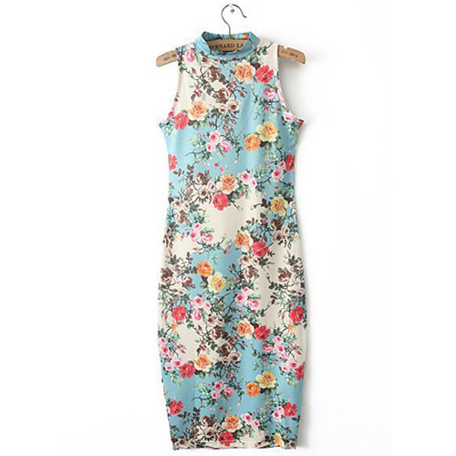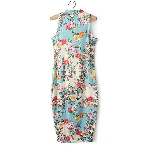 This Cheongsam dress features chic floral print pattern with stand collar design.